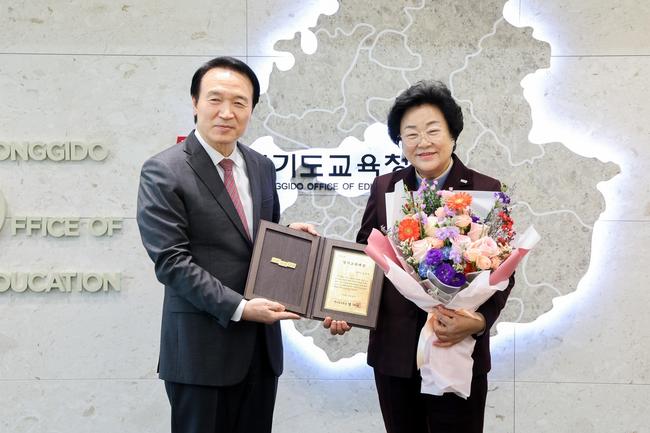 경기교육대상은 경기도 교육의 정책목표 달성, 교육 자치 발전 및 교육여건 개선에 공적이 큰 인물을 발굴하여 수여하는 상으로 이날 수여식에는 임태희 경기도 교육감이 참석하여 표창패를 전달하고 환담을 나눴다.
