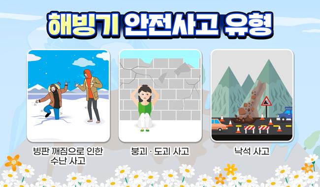 소방청은 해빙기를 맞아 포트홀(도로 파임)과 낙석 등 각종 안전사고에 대한 주의를 당부했다. 최근 3년간 2~3월 해빙기 관련 사고는 총 151건으로, 1명이 사망하고 12명이 부상을 입었다.