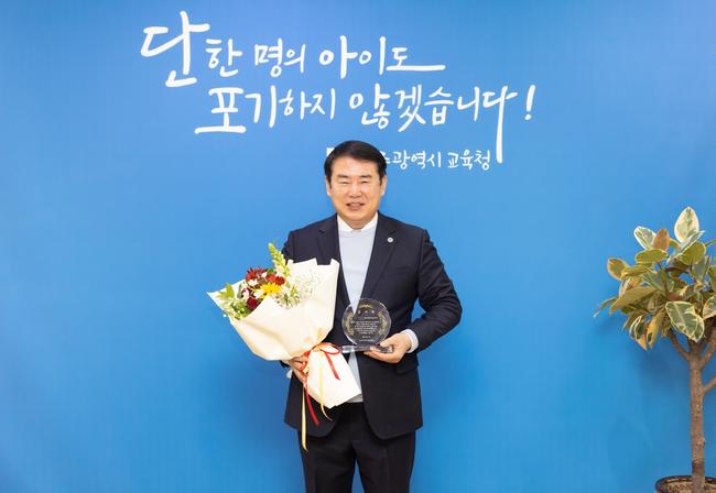 광주시교육청(교육감 이정선)이 일본 오사카 한국교육원으로부터 한·일 교육교류와 한국어·한국문화 보급에 기여한 공로를 인정받아 감사패를 받았다.