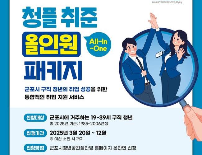 군포시 청년공간 플라잉(이하 `청플`)이 군포시 거주 구직 청년들을 대상으로 `청플 취준 올인원(All-In-One) 패키지` 사업을 오는 20일부터 시행한다.