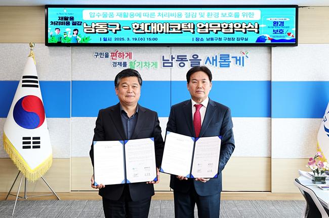 남동구는 최근 남동국가산업단지에 자리한 폐기물 처리 및 재생업체 ㈜현대에코텍과 압수 물품 재활용을 위한 업무 협약을 맺었다고 4일 밝혔다.