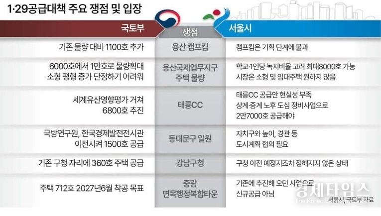 경제타임스 이준오기자 | 정부의 1·29 대책(‘도심 주택공급 확대 및 신속화 방안’)을 놓고 국토교통부와 서울시가 연일 설전을 이어가고 있다. 정부의 공공 주도 공급 방안보다 민간 주도의 정비사업 활성화가 우선이라는 서울시의 반발에 정부는 서울시 판단이 잘못됐다고 실현 가능하다고 맞서는 형국이다.