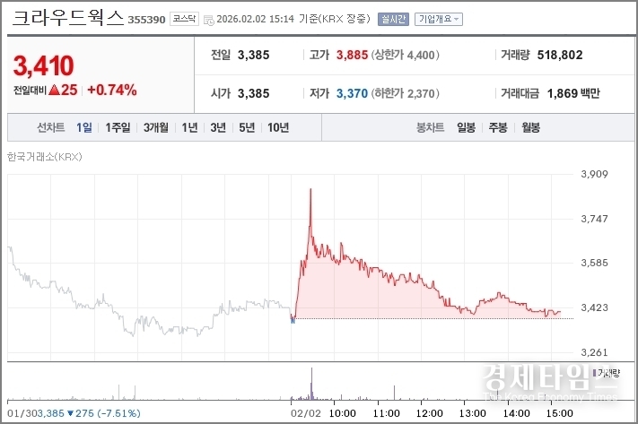<크라우드웍스(355390) 역대 고점 vs 현시점(2026.02.02) 비교>