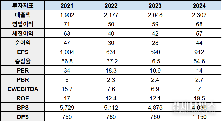 <Financial Data (2021-2024)(단위: 십억원, %, 배, 원)>