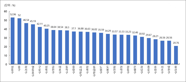 (주)직방은 한국감정원 부동산거래현황 데이터를 활용하여 서울시 아파트 연령대별 매매거래비중을 분석한 결과, 6월 서울시 25개구 아파트 30대 이하 매매거래비중은 성동구 52.96%, 중구 52%, 강서구 46.54%, 영등포구 45.19%, 구로구 42.11% 순으로 나타났다. 반면, 용산구(20.76%), 양천구(26.56%) 등에서는 관련 거래비중이 상대적으로 낮게 나타났다.