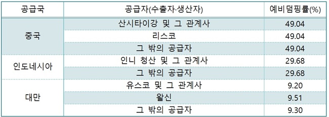 무역위원회는 향후 3개월간 국내외 현지실사, 공청회 등 본조사를 실시한 뒤 덤핑방지관세 부과 여부를 최종 판정할 예정이다.