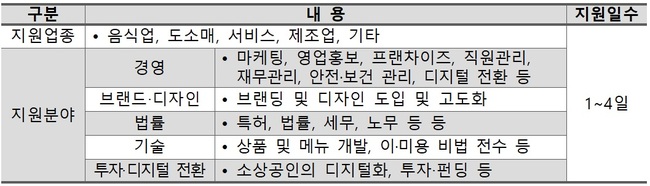 그간 문제점으로 지적됐던 제한된 업종, 마케팅과 경영관리 위주의 컨설팅 방식을 개선해 올해부터는 업종별 비즈니스모델(BM) 고도화, 디지털 전환, 안전, 투자와 펀딩 등으로 컨설팅 분야를 대폭 확대했다.