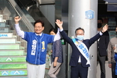 송영길, 금천구청역에서 유성훈 금천구청장 후보와 합동 유세
