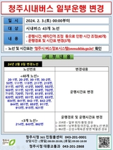 청주 시내버스 일부 운행 시간 및 노선 조정