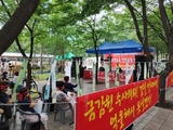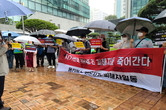 [포토] 옵티머스 펀드 사기 보상 촉구···빗속에서 집회 연 NH투자증권 피해자들