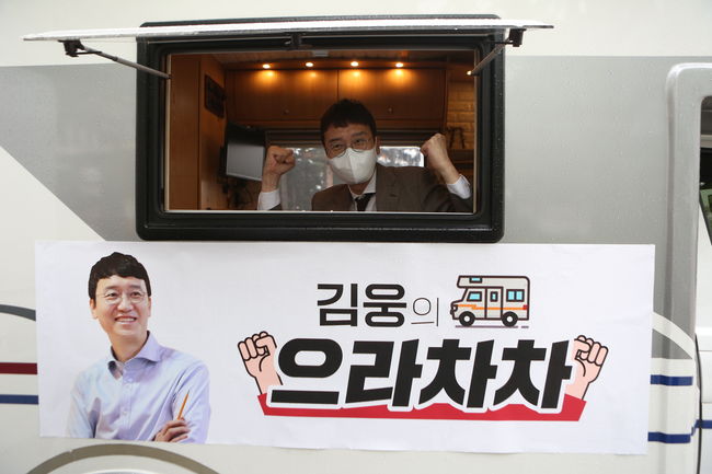 국민의힘 당 대표 경선에 출마한 김웅 의원(송파갑)이 별도의 캠프 사무실을 차리는 대신 현장을 직접 찾아가는 `움직이는 캠프` 가동을 시작했다.