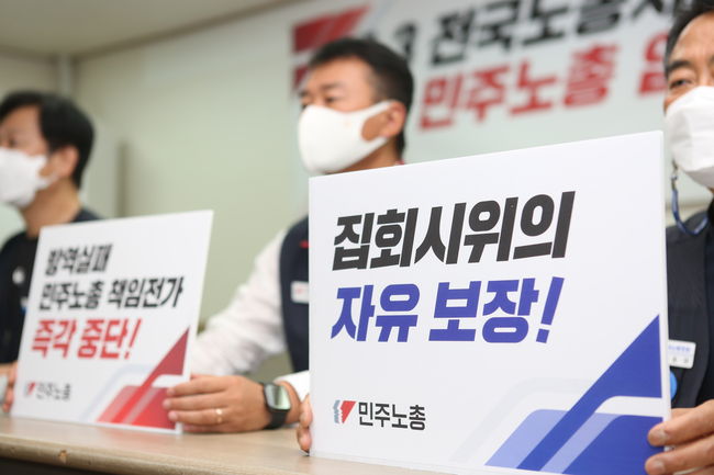 민주노총은 "코로나19 감염의 주된 경로는 실내 밀집 생활 감염"이라며 "감염 가능성이 현저하게 낮은 야외 집회 등에 대한 과도한 제한이 아닌 실질적으로 실효적인 방역 대책으로의 전환을 요구한다"고 강조했다.
