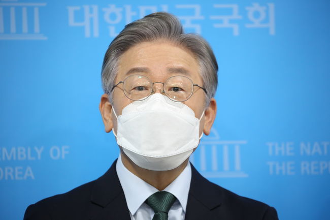 더불어민주당 대권주자인 이재명 경기지사가 26일 오전 국회에서 기자회견을 갖고 에너지전환 공약을 발표했다.