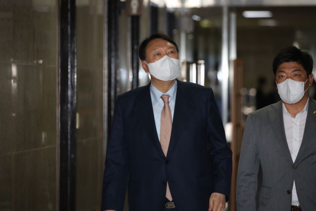 이날 기자회견에는 당내 대권 주자인 윤석열 전 검찰총장, 유승민 전 의원, 최재형 전 감사원장 등이 참석했다.
