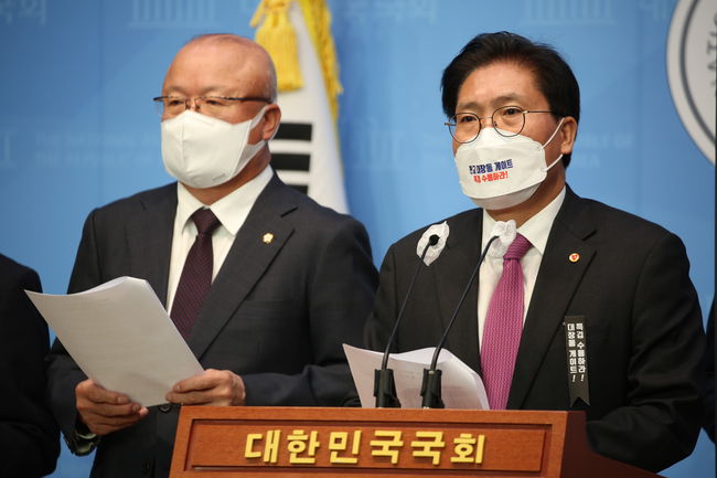 이들은 "예산안 기한이 10일이 채 남지 않은 가운데 더불어민주당은 61조원 규모에 달하는 국토위 예산안 심사는 팽개치고 자당 대선후보 관련 법안 처리에만 혈안이 돼있다"고 비판했다.