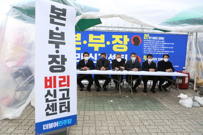 더불어민주당 윤석열 일가 부정부패 국민검증특위가 26일 오후 2시 서울 여의도 국회 앞서 천막 제보센터 해단식을 가졌다. 더불어민주당 의원들로 구성된 검증특위는 26일 오후 서울 여의도 국회 앞에 설치한 천막 제보센터 해단식을 가졌다.