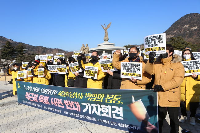 이들은 "촛불혁명으로 탄생한 문재인 정부 5년 동안 대통령이 약속했던 `성역 없는 진상규명`을 기다렸으나 문 정부는 대통령의 권한과 의지를 충분히 사용하지 않았다"며 "세월호 참사 진상규명과 책임자 처벌은 여전히 진행형인 과제로 남아있다"고 강조했다.