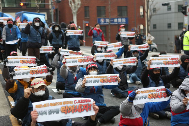 한편, 택배노조 CJ대한통운본부는 지난 23일 찬반투표 실시 결과 93.6%의 찬성으로 총파업을 결정해 지난 28일부터 무기한 파업에 들어갔다. 파업에는 CJ대한통운 기사 2만여명 중 노조원 2500명 가운데 쟁의권이 있는 조합원 1700여명이 참여한다.