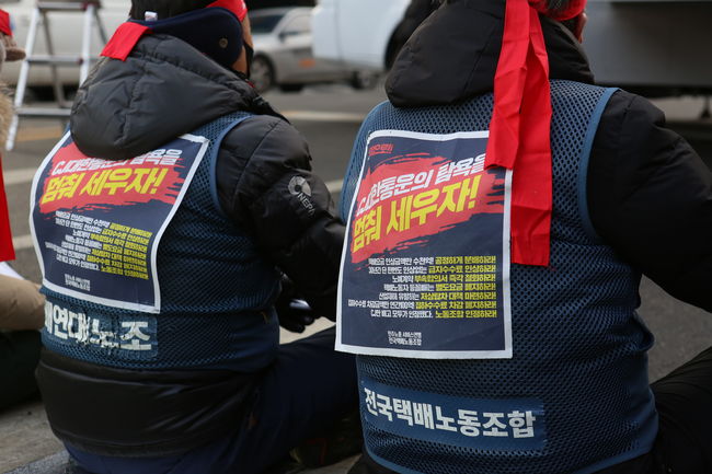 진경호 택배노조 위원장은 "CJ 대한통운 `탐욕의 질주`의 설계자는 이재현 회장"이라며 "CJ 대한통운은 택배요금 인상 이후 벌어들인 영업이익 중 3000억원을 자신의 곳간을 채우는 데 사용하겠다고 밝혔다"고 주장했다.