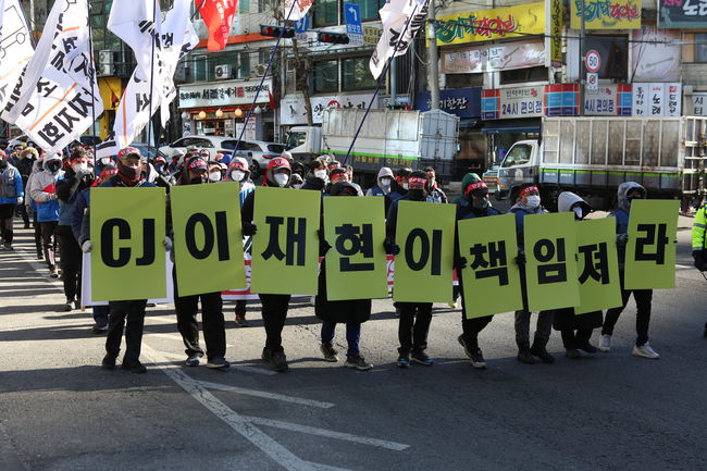 이들은 "총파업을 초래한 CJ대한통운의 근원이 CJ그룹 총수 이재현의 `성과주의`와 `수익성 제고` 방침에 있다고 판단해 CJ그룹 본사에서 총파업대회를 열게 됐다"고 설명했다.
