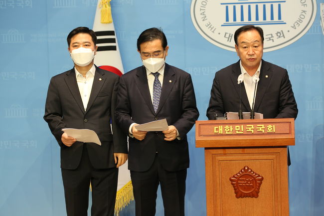 국민의힘 한기호 · 태영호 · 지성호 의원은 22일 국회 소통관에서 `탈북민 강제북송 진실규명 촉구 관련 기자회견`을 가졌다. 기자회견에서 이들 의원은 "합동신문 결과가 의문투성인데도 정의용 전 청와대 국가안보실장은 탈북자 두 사람의 증언이 완전 일치했다고 거짓말 하면서 희대의 살인마, 악마로 만들었다"고 비판했다.