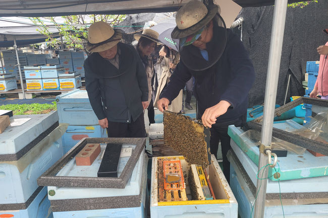 송두환 위원장은 농가 방문 전 강원도농업기술원 관계자로부터 기후변화로 인한 농업 피해와 대응 상황을 청취하고, 농민들의 피해를 예방하기 위해 노력해 줄 것을 당부하였습니다. 방문 농가에서는 꿀벌 군집 붕괴 현상, 폭염과 가뭄에 따른 피해 실태 등을 확인하고 이에 따른 농민들의 어려움과 요청사항을 경청하였습니다.