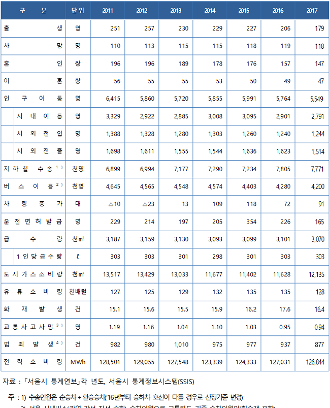 서울시는 이와 같은 내용의 2017년 인구․경제․주택․교육․교통 등 20개 분야 340개 주요 통계를 통해 서울의 사회생활상을 볼 수 있는 「2018 서울통계연보」를 발간하고, 서울통계 홈페이지를 통해 12일 공개했다.