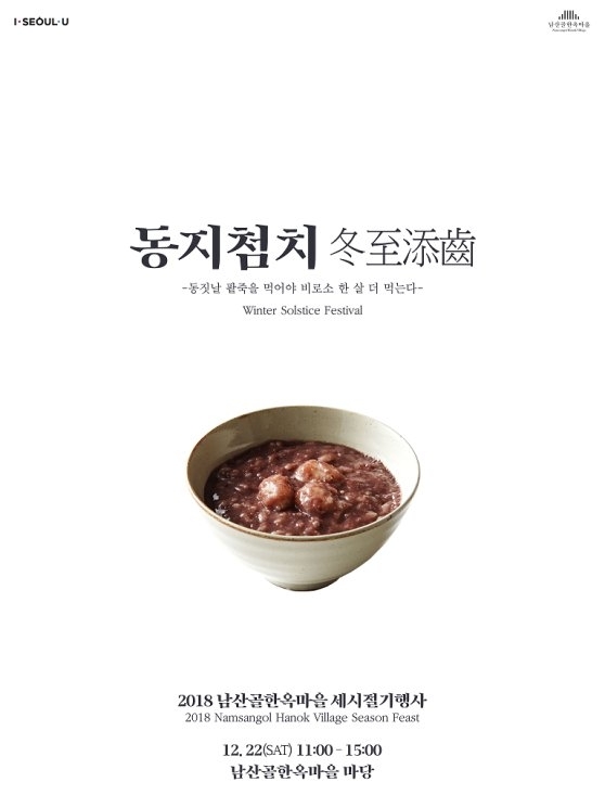 서울시는 ‘남산골한옥마을’에서 12월 22일 동지를 맞아 <동지첨치(冬至添齒)> 세시행사를 개최한다고 18일 밝혔다.