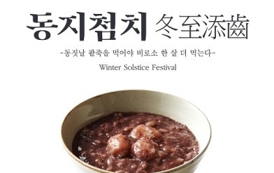 우리 조상들은 동지를 ‘작은 설날’이라 여겨 ‘동지첨치(冬至添齒)’라고 하여 “동짓날 팥죽을 먹어야 비로소 나이 한 살을 더 먹는다”라고 생각했으며, 동지 날 팥죽을 먹어야 한 해 동안 건강하고 액운을 피할 수 있다고 믿었다.