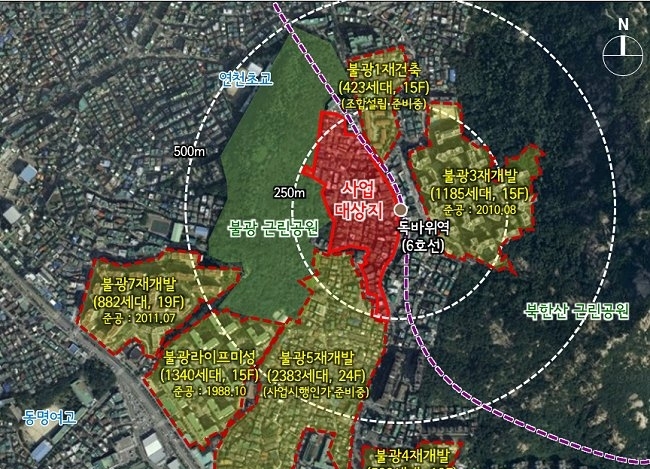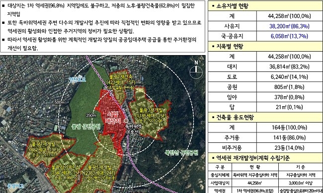 독바위역세권 재개발정비구역은 6호선 독바위역 일대 1차역세권으로 노후․불량건축물이 밀집하여 주거환경이 열악하고, 주변 지역에 다수의 재건축 및 재개발 사업이 완료되었거나 추진중인 지역이다.