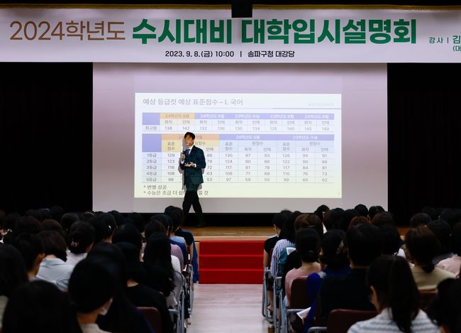 송파구가 예년보다 수시 비중이 늘어난 2025학년도 대학입시를 앞두고 합격전략 설명회를 마련했다.