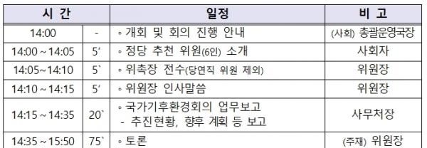 금번 회의는 지난 4월 29일 국가기후환경회의 출범식 개최 후에 6인의 정당 추천 위원 위촉으로 총 44명의 위원 구성이 완료된 후 첫 번째로 개최되는 회의로서,