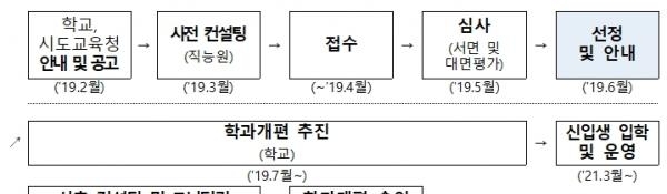 교육부는 확정 명단을 교육청과 학교에 안내하고 이에 소요되는 재원을 내년도 보통교부금 기준재정수요 산정 시 반영할 계획이며, 지원이 확정된 학교는 추진계획에 따라 시도교육청의 학과개편 승인절차를 거쳐 2021학년도부터 신입생을 모집하게 된다.