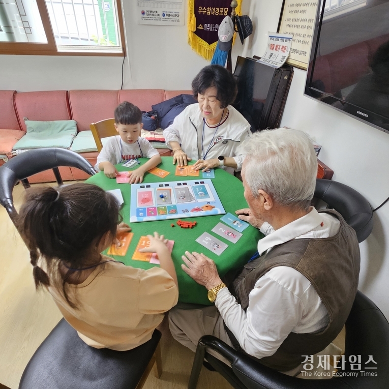 경제타임스 기수완(인턴) 기자 | 인천의 한 경로당에서 어르신과 손주뻘 유아가 함께 참여하는 '세대공감 보드게임' 프로그램이 진행돼 눈길을 끌고 있다.