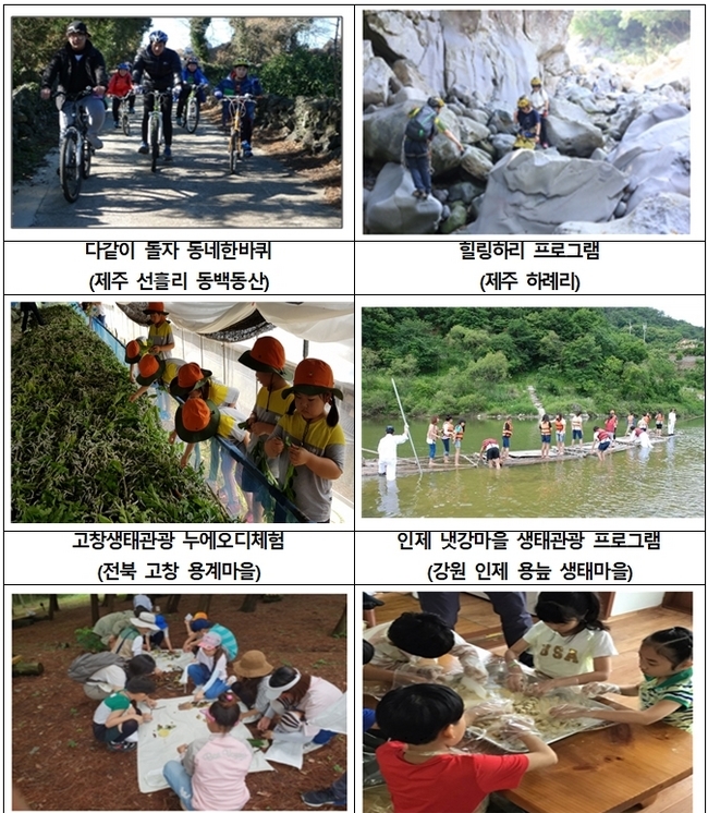 이와 함께 제주 하례리, 전북 정읍 솔티마을, 전북 고창 용계마을, 강원 인제 용늪 생태마을 등 4곳의 6개 프로그램은 환경 성적 표지 인증 1단계인 '탄소발자국' 인증을 받았다.