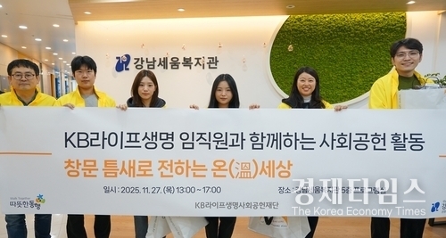 경제타임스 전영진 기자 | KB라이프는 임직원 봉사단이 전일 강남세움복지관과 함께 강남구 독거 어르신을 위한 '겨울 맞이 행복나눔 봉사활동'을 진행했다고 11월28일 밝혔다.