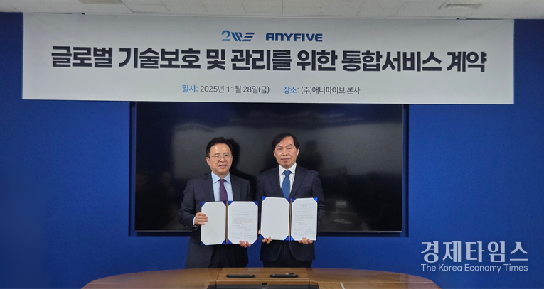 경제타임스 김재억 기자 | 글로벌 기술사업화 전문기업 ㈜애니파이브가 국내 중소기업의 해외 진출을 위한 기술보호 전략을 선도한다. 애니파이브는 11월 28일 유기질 비료 전문기업 ㈜투위와 베트남을 포함한 아세안 시장 공략을 위한 ‘기술보호 및 관리’ 통합서비스 계약을 체결했다고 밝혔다.