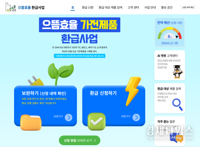 경제타임스 전영진 기자 | 한국에너지공단은 ‘2025년 으뜸효율 가전제품 환급사업’ 신청을 오는 16일 18시까지 접수한다고 1월12일 밝혔다.