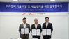 ▲이석희 SK온 사장(가운데)과 김부기 스탠다드에너지 대표(오른쪽), 김필석 SK이노베이션 환경과학기술원장(왼쪽)이 업무협약 체결 후 기념촬영을 하고 있다. / 제공: SK온