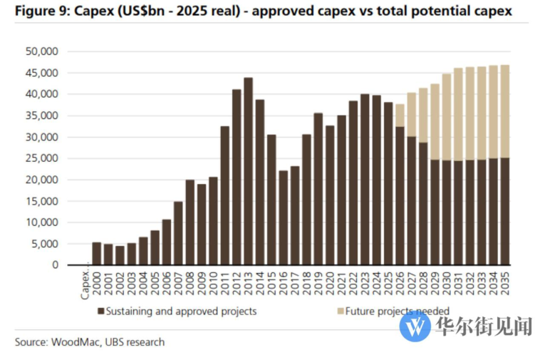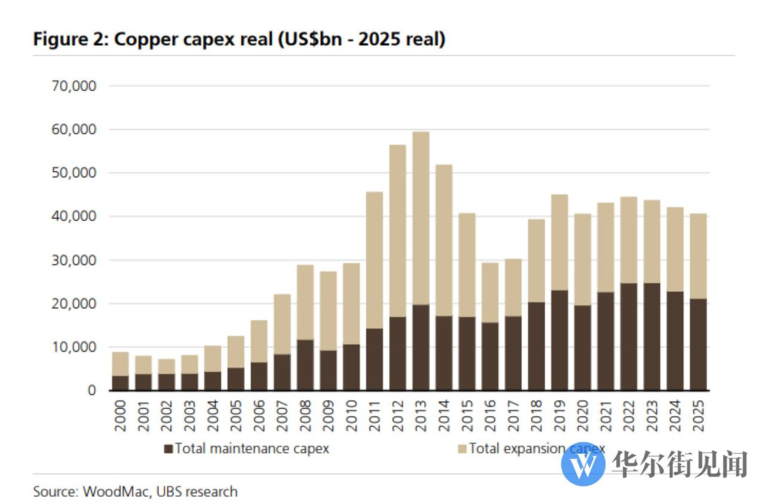 UBS는 보고서를 통해 현재 구리 시장이 심각한 '자본 효율성 저하'에 직면해 있다고 지적했다. 광산 기업들이 투자를 늘리고는 있지만, 인플레이션을 감안한 실질 자본지출(Capex)은 2013년 고점의 30% 수준에 불과하다는 것이다.