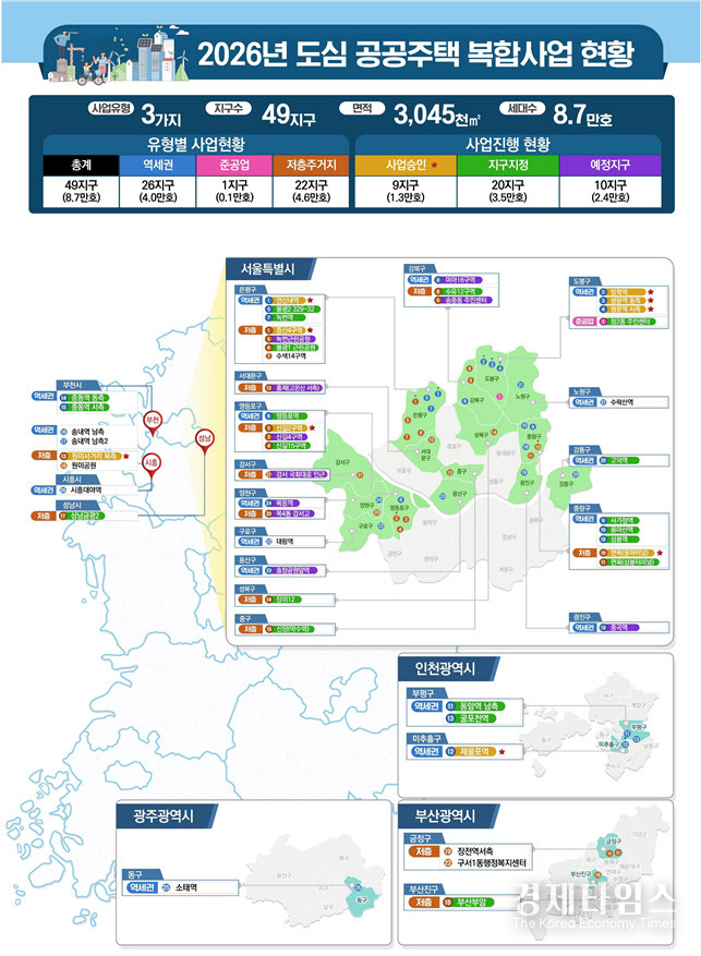 경제타임스 이준호 기자 | 정부가 5년 전 야심차게 내놓았던 '도심 공공주택 복합사업(도심복합사업)'을 다시 꺼냈다. 판을 새로 짜는 수준이다. 2021년 도입 이후 속도를 내지 못했던 도심 공공주택 복합사업을 다시 가동키로 하고 서울 노후 도심을 대상으로 신규 후보지 공모를 재개하는 한편 용적률 상향 등 사업성 개선책도 병행한다.