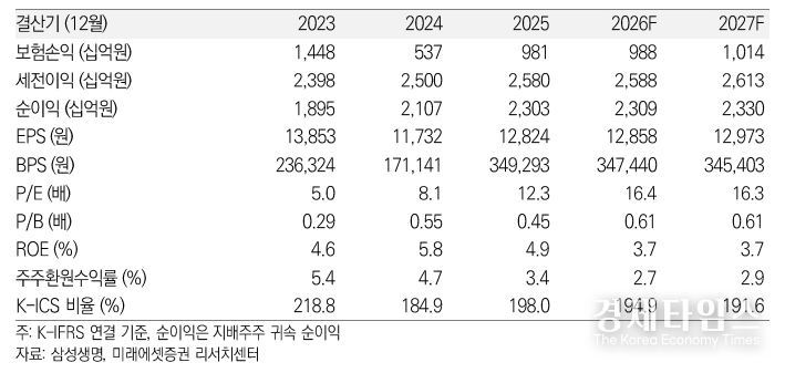 보험손익은 소폭 개선될 것으로 보이나 투자손익의 변동성이 제한적일 것이라는 분석이다. 특히 보험사의 미래 수익 지표인 계약서비스마진(CSM)의 경우, 2026년 손해율 가이드라인이 반영되면서 업계 전반에 걸쳐 대규모 조정이 발생할 가능성이 높다. 삼성생명 역시 2025년 이미 1.4조원 규모의 CSM 조정을 거친 바 있어, 향후 CSM 증가 폭은 점차 둔화될 것으로 예상된다.