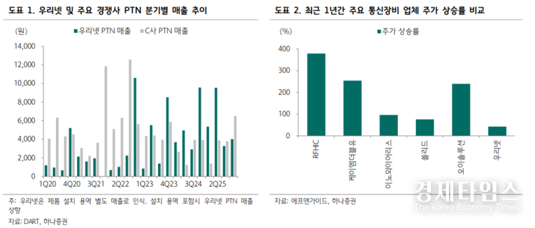 주가 측면에서도 매력적인 구간이다. 현재 우리넷의 주가순자산비율(PBR)은 1배 수준에 머물러 있다. 통상 유선 장비주는 무선 장비주 상승 이후 후행하는 경향이 있는데, 이미 국내 무선 주도주들이 3~5배가량 급등한 점을 고려하면 순차적인 순환매 유입이 기대된다는 평가다.