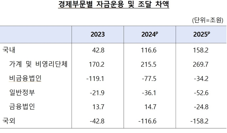 비금융 법인기업의 경우 지난해 순자금 조달 규모가 34조2000억원으로 2024년(77조5000억원)과 비교해 줄었다. 기업 순이익이 늘어난 가운데 대내외 불확실성이 커져 투자가 둔화된 영향이다.