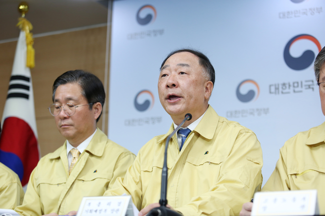 홍남기 경제부총리 겸 기획재정부 장관이 지난 2월 28일 서울정부청사에서 브리핑을 열고 발언하고 있다. (사진=김상림 기자) 정부가 자동차부품산업에 대해 완성차업계, 정부, 지방자치단체가 함께 5천억원 규모의 '상생특별보증'을 신설해 공급한다.