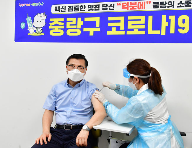 서울 중랑구는 류경기 구청장이 2일 중랑구보건소에서 아스트라제네카 코로나19 백신을 접종받았다고 밝혔다.