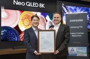 2024년형 삼성 Neo QLED·OLED·더 프레임 등 신제품 총 8개 시리즈(34개 모델)가 독일 TUV라인란드로부터 ‘탄소저감(Product Carbon Reduction)’ 인증을 획득했다고 5일 삼성전자가 밝혔다. 삼성전자 영상디스플레이사업부 김용재 부사장(왼쪽)과 `TUV 라인란드` 프랭크 홀즈만(Frank Holzmann) 전기전자부문 글로벌 부사장(오른쪽)이 `탄소 저감` 인증 수여식에서 기념 촬영을 하고 있다. TUV 라인란드는 TV제품의 제조, 운송, 사용, 폐기까지 전 생애주기에 걸쳐 발생하는 온실가스 배출량을 국제 기준에 따라 평가해 ‘탄소 발자국’ 인증을 부여한다. ‘탄소 발자국’ 인증을 받고 기업의 탄소 배출량 저감을 위한 지속적인 관심과 노력을 통해 기존 동급 모델 대비 탄소 발생량이 감소한 제품에는 ‘탄소저감’ 인증을 수여한다. 삼성전자는 2021년 영국 카본트러스트로부터 Neo QLED로 4K 이상 해상도를 가진 TV 최초로 탄소저감 인증을 획득한 이후, QLED·크리스탈 UHD·라이프스타일 T