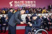 행정안전부 이북5도위원회는 이북도민회중앙연합회(회장 김현용)와 공동주최하는 ‘제42회 대통령기 이북도민 체육대회’를 10월 20일(일) 서울 효창운동장에서 개최했다. 이상민 행정안전부 장관이 20일 오전 서울 효창운동장에서 열린 제42회 대통령기 이북도민 체육대회에 참석하여 유공도민에 대한 정부 포상을 수여하고 있다. ‘대통령기 이북도민 체육대회’는 실향의 아픔을 달래고 이북도민과 북한이탈주민의 화합과 단결을 도모하기 위해, 1983년 첫 대회를 시작으로 매년 가을에 개최된다. 올해로 42회차를 맞은 이번 대회에는 이상민 행정안전부 장관, 국회의원, 전국 각지에 살고 있는 1만여 명의 이북도민과 북한이탈주민이 참여했다. 이번 대회는 1부 개회식, 2부 체육행사, 3부 폐막행사 순으로 진행됐다. 1부 ‘개회식’에서는 관악대 행진과 선수단 입장, 유공도민 포상, 축사, 합창 공연 등으로 대회의 시작을 알렸다. 2부 ‘체육행사’는 축구, 단체 줄넘기, 모래주머니 넣기, 줄다리기, 육상 종목에서 이북도민 선수단이 경합을 벌였다. 3부 ‘폐막행사’에서는 올해 종