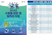 수원시(시장 이재준)가 `2025년 수원형 성장-업 일자리사업`에 참여할 시민 49명을 모집한다. 수원시(시장 이재준)가 `2025년 수원형 성장-업 일자리사업`에 참여할 시민 49명을 모집한다. 수원형 성장-업 일자리사업은 참여자가 공공부문에서 실무경험을 쌓고, 직업역량을 강화해 민간일자리를 찾을 수 있도록 지원하는 것이다. 수원시는 2025년 수원형 성장-업 일자리사업으로 36개(21개 부서) 사업을 추진한다. ▲일자리 카운슬러 ▲일자리발굴단 운영 ▲창업지원컨설턴트 ▲새빛하우스 집수리 지원 코디네이터 ▲미술관 홍보디자이너 ▲수원컨벤션센터 임대마케터 등 실무 경험·경력을 쌓아 민간일자리로 취업 연계를 할 수 있는 일자리다. 공공기관·단체와 컨소시엄을 구성해 다양한 분야의 일자리를 제공할 예정이다. 사업 담당 부서별 채용 계획에 따라 1월까지 참여자를 모집한다. 수원시 홈페이지 검색창에서 `수원형 성장-업 일자리사업`을 검색해 정보를 확인할 수 있다. 선발된 사람은 1월부터 11월까지 최대 10개월 동안 일하게 된다. 수원시 생활임금(1시간당 1만 1290원)이 적용된다. 수원시 관계자는 "질 높은 공공일자리를 제공하는 수원