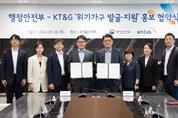 “담배의 옆면을 봐주세요!” 전국 편의점 등 10만여 개 점포에서 판매되는 KT&G 담뱃갑에 사회·경제적 어려움에 처한 위기가구를 도울 수 있도록 ‘힘들 땐 129, 읍·면사무소 또는 동 주민센터에 꼭! 전화, 방문하세요’ 문구를 표기해 유통한다. 구본근 행정안전부 스마트복지안전공동체추진단장(오른쪽에서 네번째)과 김승택 KT&G 지속경영본부장은 26일 오후 서울 강남구 소재 KT&G 서울타워에서 위기가구 발굴 · 지원을 위한 업무협약서에 서명 후 참석자들과 기념 촬영을 하고 있다. 이와 관련해 행정안전부(장관 이상민)와 KT&G(사장 방경만)는 9월 26일 ‘위기가구 발굴’ 홍보 협약식을 개최했다. 협약식에는 구본근 행정안전부 스마트복지안전공동체추진단장과 김승택 KT&G 지속경영본부장이 참석해, 위기가구 발굴을 위한 홍보 활동, 위기가구 발생 대응을 위한 지원 등의 내용을 담은 ‘위기가구 발굴·지원을 위한 협력안’에 서명했다. 이에 따라 10월부터 생산되는 보헴, 레종 등 17종, 약 4천만 개의 담뱃갑에 위기가구